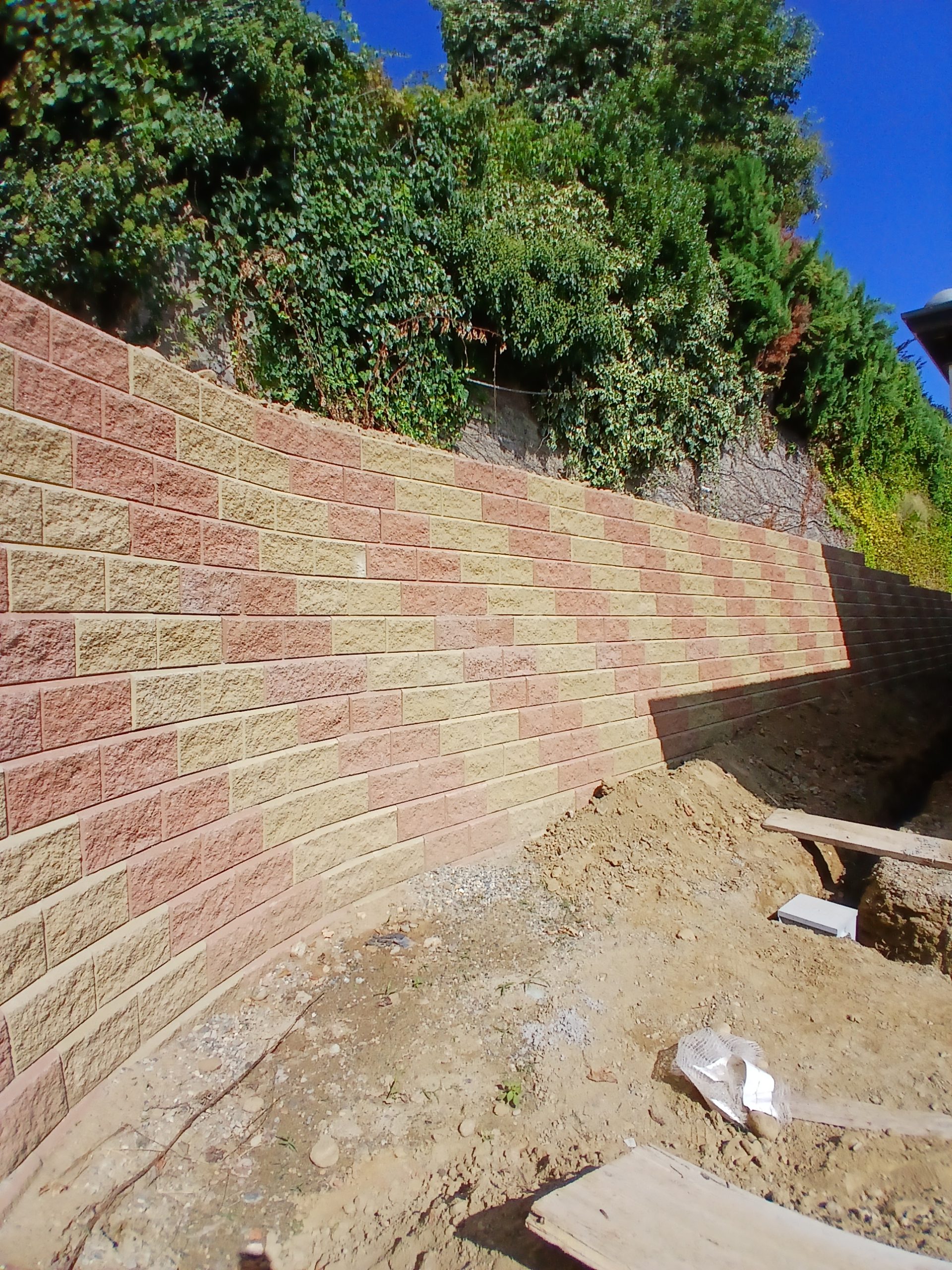 Il sistema ALLAN BLOCK® combina i principi fondamentali della meccanica dei terreni relativi alle pendenze, alla pressione del terreno e alla massa specifica totale del blocco, al fine di creare muri di sostegno gravitazionale caratterizzati da una grande stabilità. Ogni muro di sostegno trasferisce la pressione del terreno nella zona attiva. La zona attiva è definita come la parte del terreno che si estende tra il muro e la superficie di scivolamento.